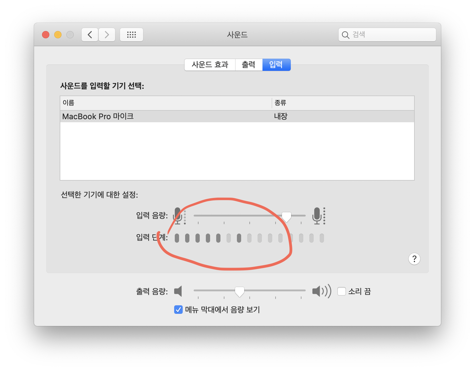 6. '입력'으로 한번 가서 마이크는 되는지 본다. 마이크도 작동을 안한다면 뭔가 잘못된 것이다.
