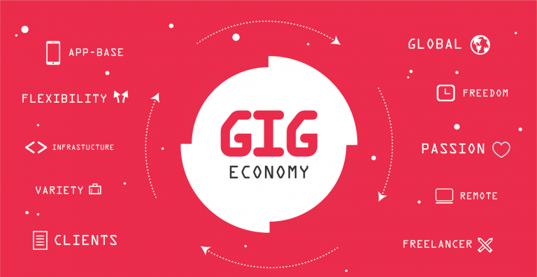 정규직보다 계약직이 많은 노동경제의 모습. 기존 노동시장은 기업이 직원들과 장기적으로 계약을 맺고 이를 통해 제품을 생산하는 형태였다면, 긱 이코노미에서는 기업과 직원은 그때그때 발생하는 수요에 따라 임시적으로 계약을 맺는다. 기업이 노동자의 노동을 단기적으로 이용할 수 있는 만큼 노동자도 기업에 장기간 얽매이지 않는다. 최근 정보통신 기술 발달에 따라 크게 확산되고 있는 형태다.