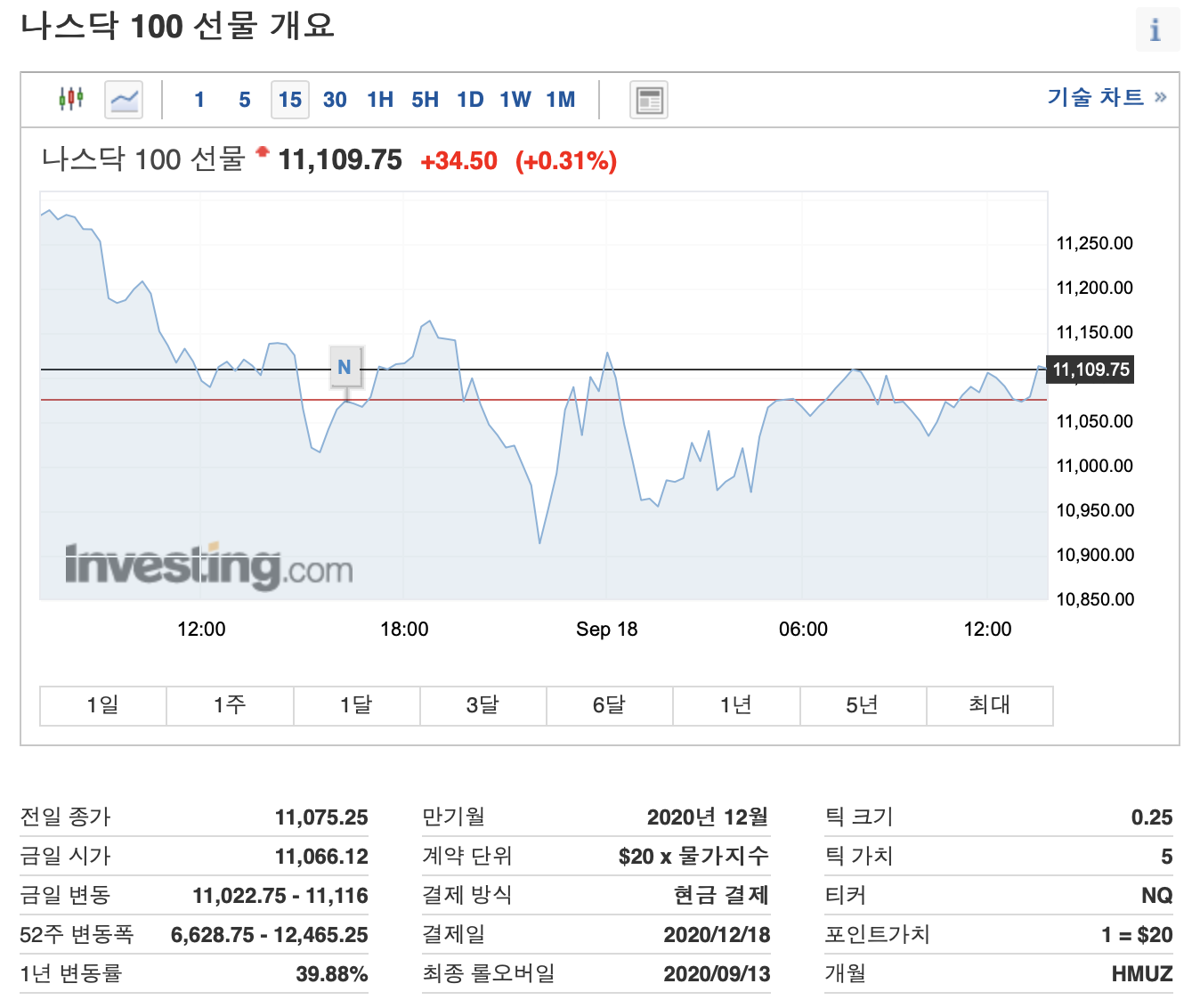나스닥 선물 지수를 이용해 확인