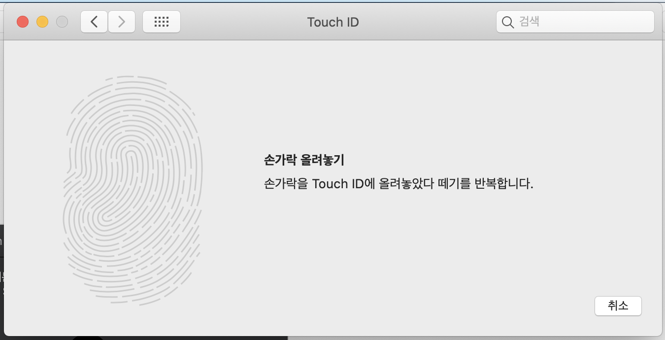 맥북을 처음 샀을때처럼 손가락 지문을 다시 등록해주시면 됩니다.