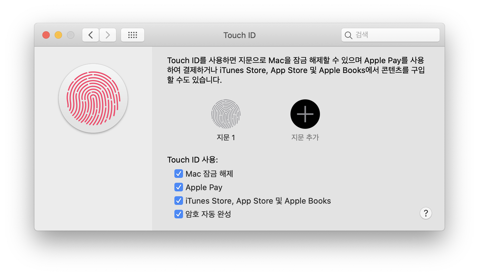 만약 설정이 이렇게 되어 있다면, 당신의 지문은 맥에서 삭제된 상태입니다. 다시 등록해주면 예전처럼 이상없이 사용 가능합니다.