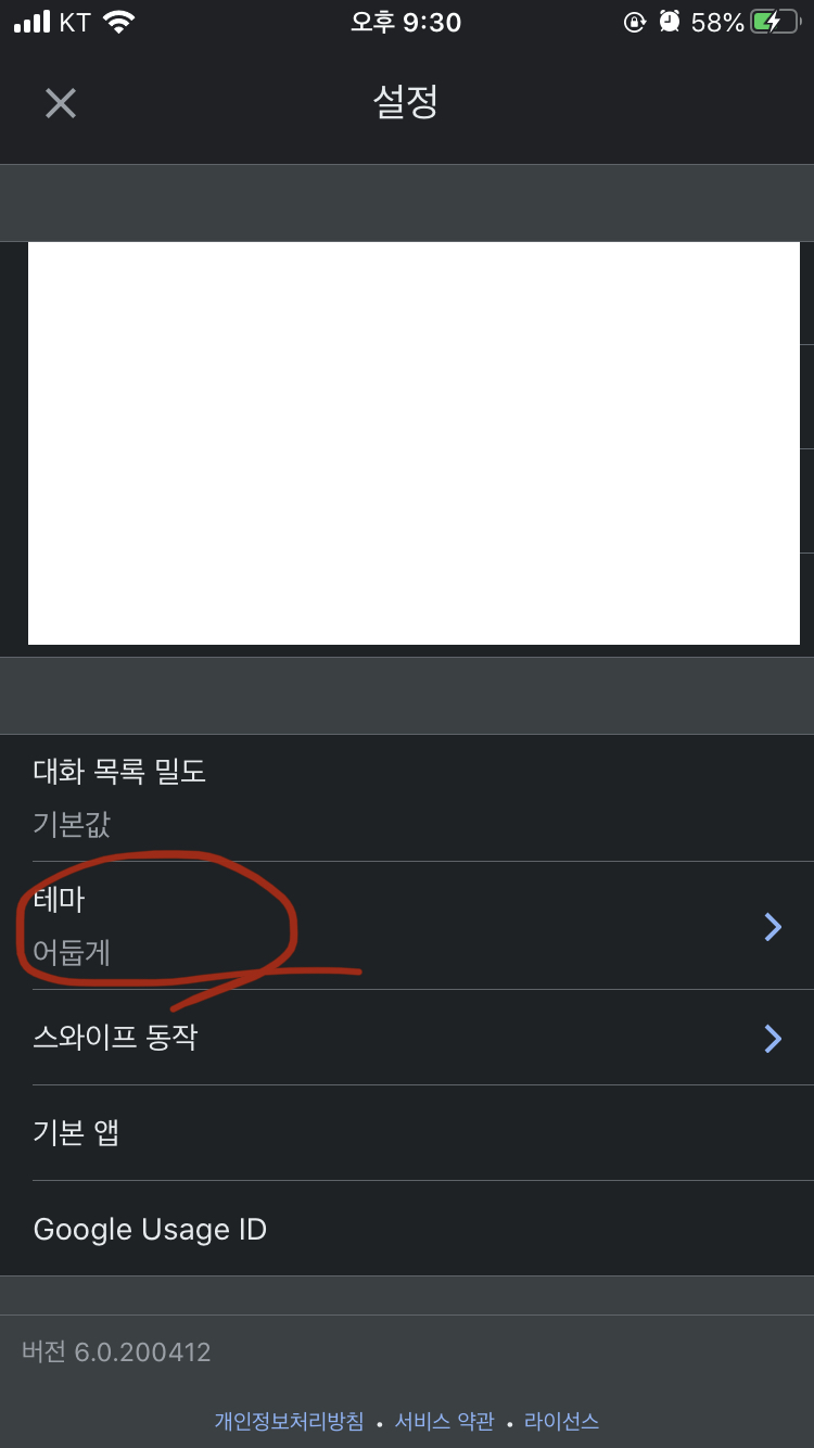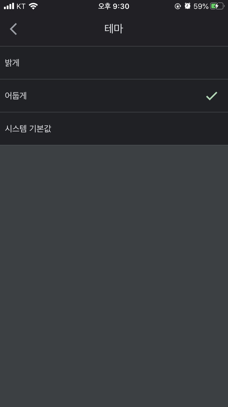 - 밝게, 어둡게, 시스템 기본값 중 하나를 선택한다. 시스템 기본값을 선택하면 지메일의 테마가 당신의 아이폰/아이패드의 기본 설정에 따라간다. 다크모드와 일반모드를 자주 바꿔가며 쓴다면 시스템 기본값을 선택하는 것이 가장 유용하다.