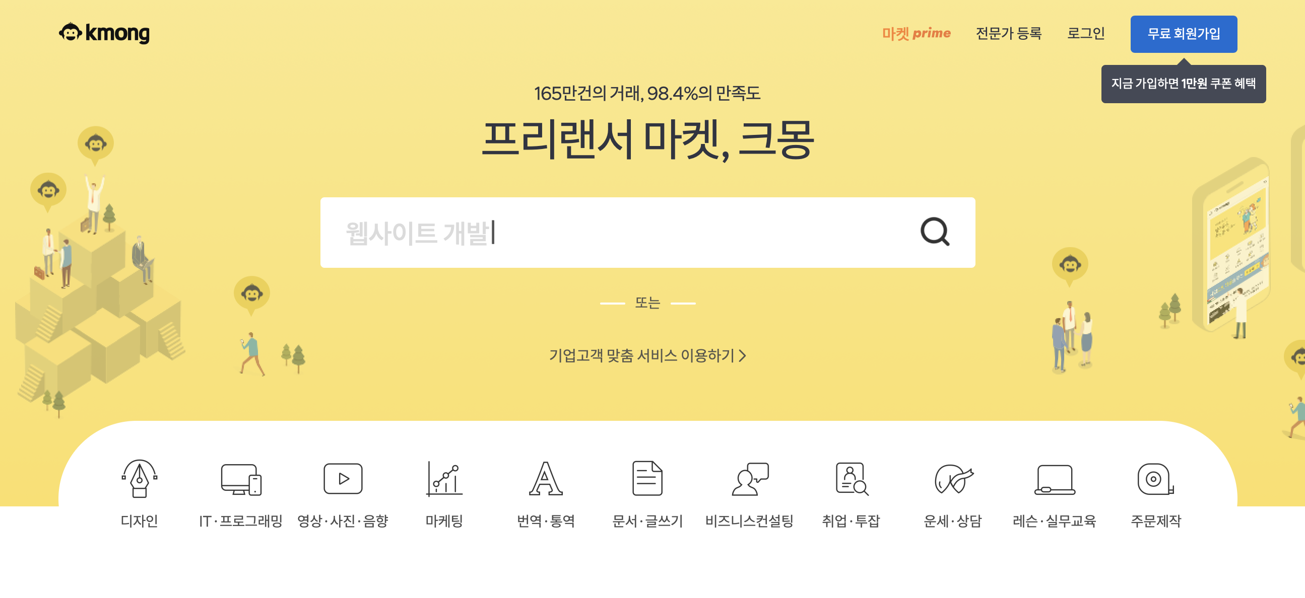 크몽은 현재 한국 최대 규모의 프리랜서 마켓이다. 누적 회원 수 100만 명이상, 누적 거래 건수는 150만건 이상이다.