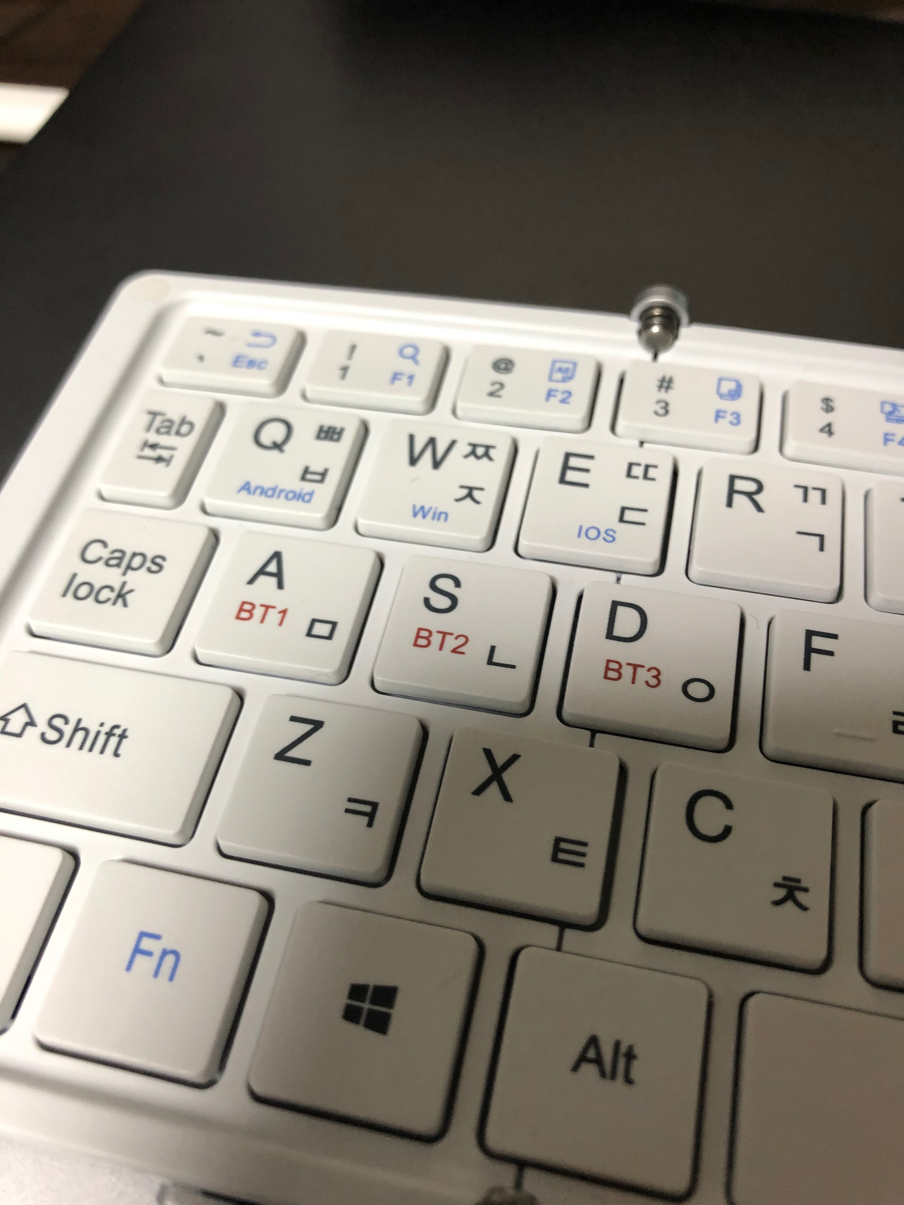 그래서 저는 접이식 키보드로 눈을 돌렸습니다. 비록 타이핑에 있어서 다소 불편할지라도 평상시에 들고다니기 좋아야 한다고 생각했어요. 타이핑할때 잠깐 불편한 것이 들고다니면서 어깨가 내내 불편한 것보다는 낫다고 판단했습니다.