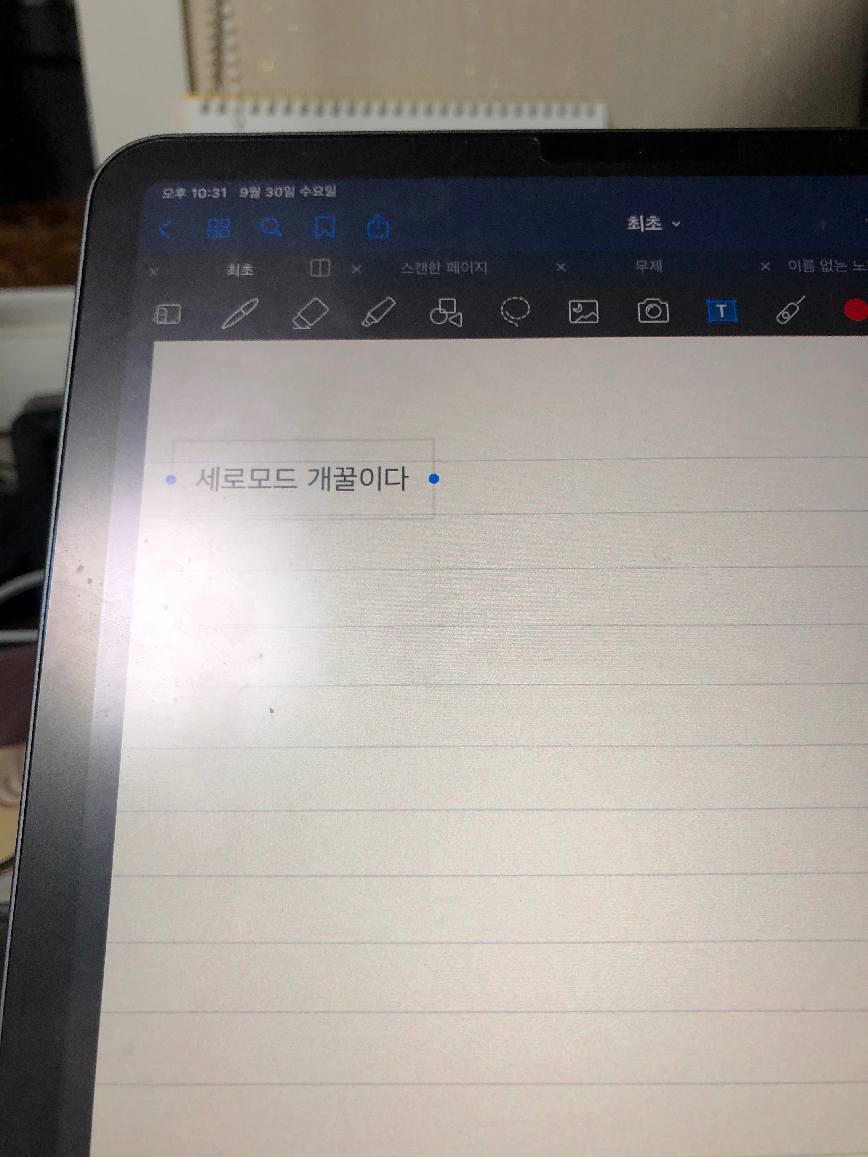 세로 모드로 문서를 작성하면 A4 용지에 직접 작성하는 기분이 듭니다. 훨씬 글이 술술 써진다는 느낌입니다. 착각일지도 모르겠습니다. 어쨌건 저는 아이패드 세로거치로 문서를 쓰고 싶었습니다.