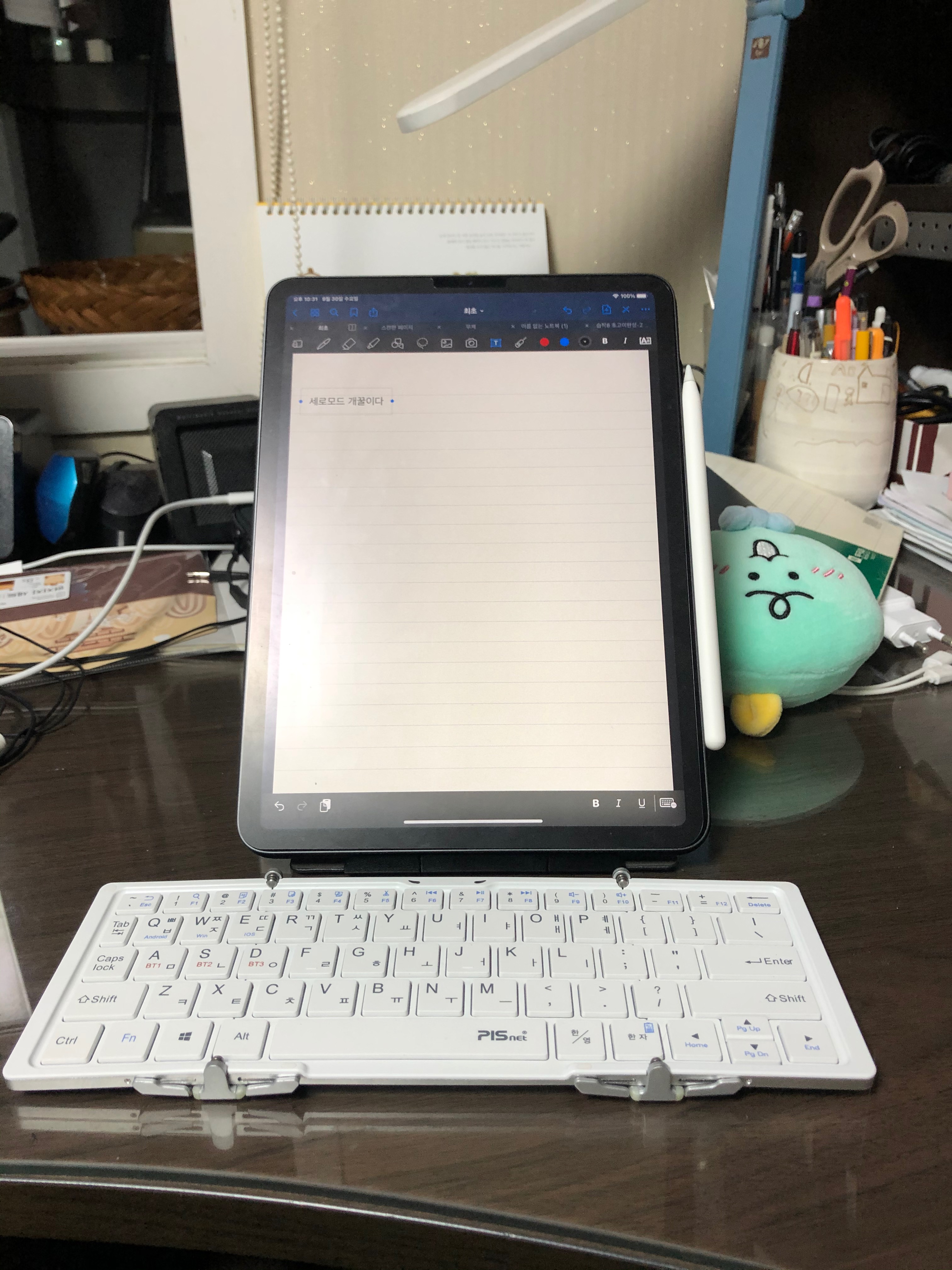 세로 거치하면 이런 모양이 됩니다. 사실 굿노트에 타이핑할 일은 별로 없긴한데 그냥 여러분 보여드리려고 한번 해봤습니다.