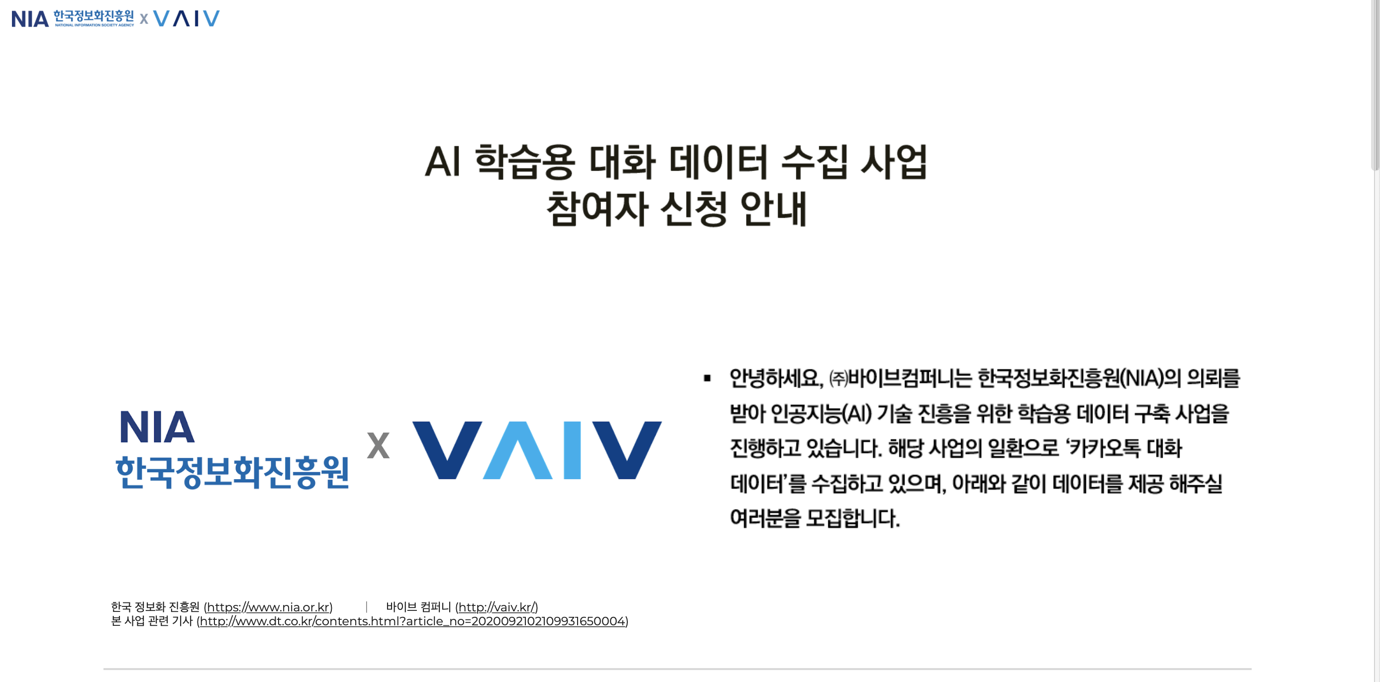참여 버튼을 클릭하면 이처럼 정부가 하청을 두고 있는 크라우드소싱 기업의 홈페이지로 이동하게 됩니다.