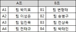 한편, A조에는 팀 박지호, 팀 이성은, 팀 임진묵, 팀 전태규가, B조에는 팀 변형태, 팀 송병구, 팀 전상욱, 팀 박태민이 배정되었다. 개막전은 6월 28일 저녁 7시에 A조 팀 박지호와 팀 이성은의 경기로 펼쳐질 예정이다.