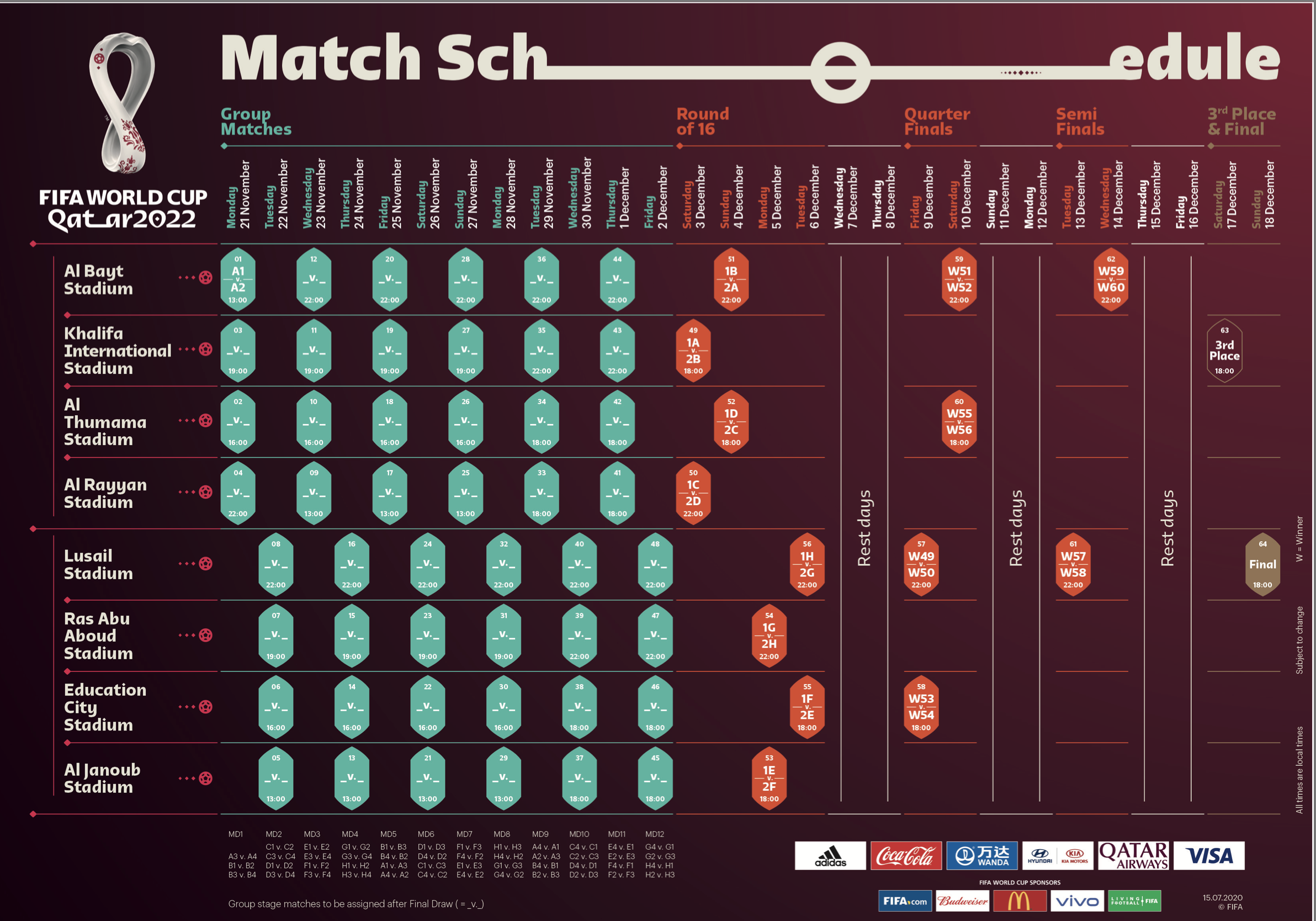 FIFA가 2022년 카타르 월드컵 스케줄을 7월 15일 공식 홈페이지를 통해 공개했다.