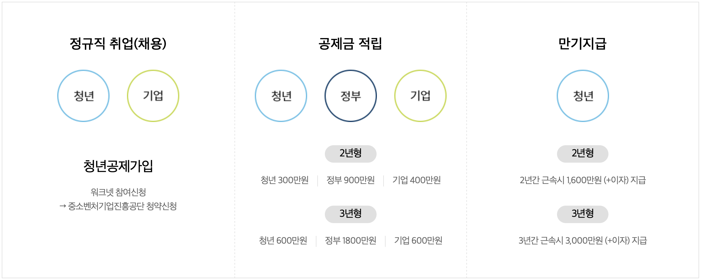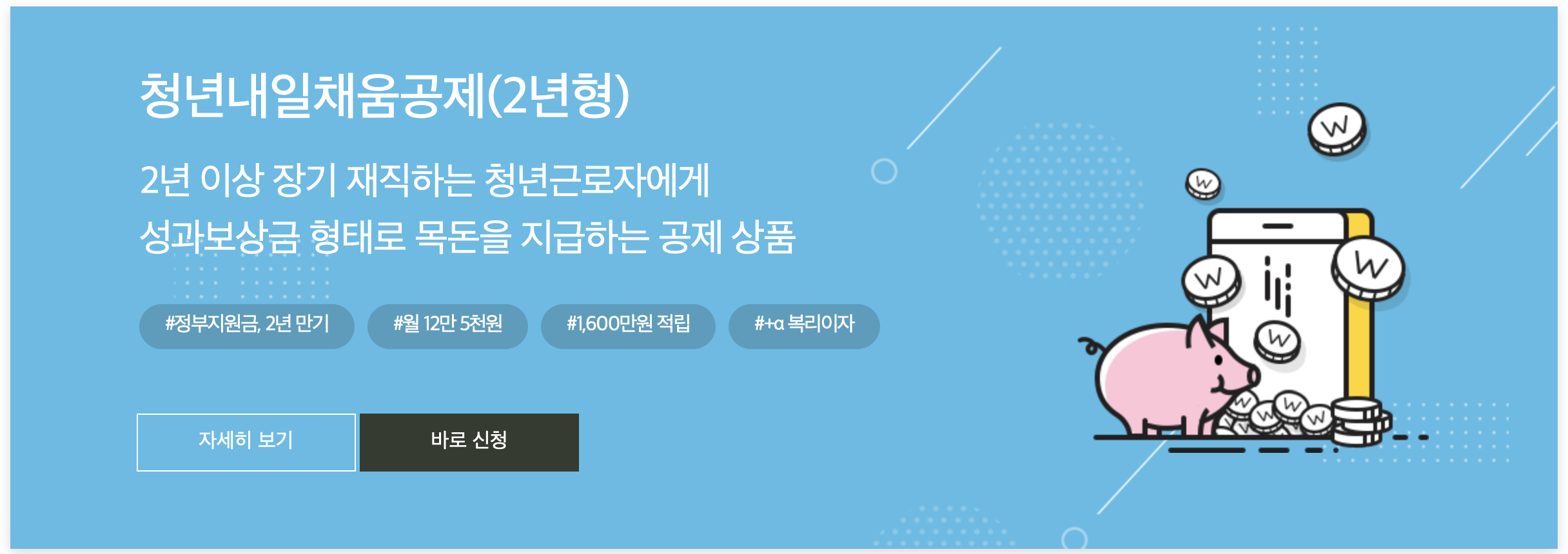 중소/중견 기업에 정규직으로 취업한 만 15세 이상 34세 이하의 청년이 지원대상으로 2년형과 3년형 상품이 제공된다.