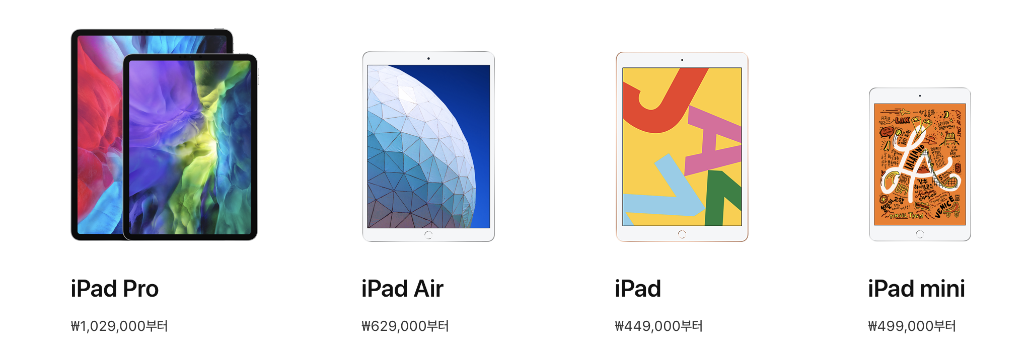 아이패드 프로, 아이패드 에어, 아이패드, 아이패드 미니까지. 애플은 아이패드 모델로만 네 가지 옵션을 내놓았다. 처음엔 저렴한 걸 사야지 하는 마음으로 애플 홈페이지를 둘러본다. 그 순간, 당신은 이미 애플의 마수에 걸렸다. 지갑이 넉넉치 않음에도 자꾸 높은 버전에 눈이 간다. 한 단계씩 올라갈때마다 추가되는 온갖 첨단기술이 판단력을 흐린다.