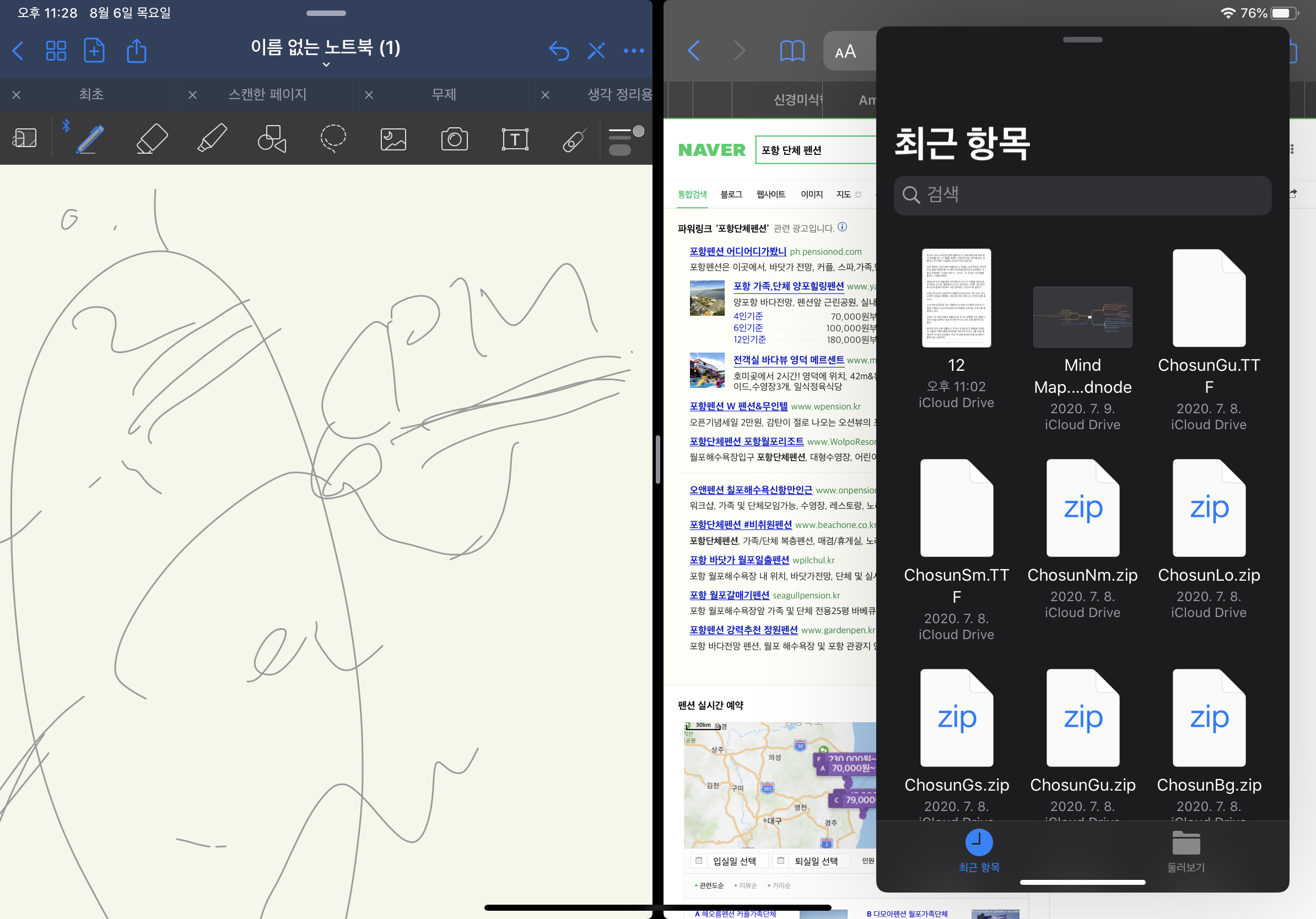 이를 통해 세 가지 앱을 동시에 활용하면서 사진이나 파일 같은 자료를 쉽게 앱과 앱 사이에서 옮길 수 있다.