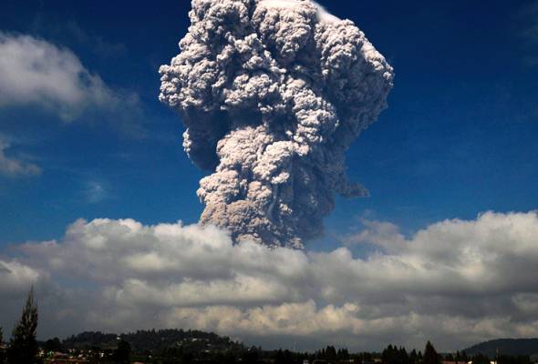 인도네시아 수마트라 섬의 시나붕산이 5일(현지시간) 폭발했다. 5,000미터 이상의 화산재 기둥을 하늘로 날려보냈다.