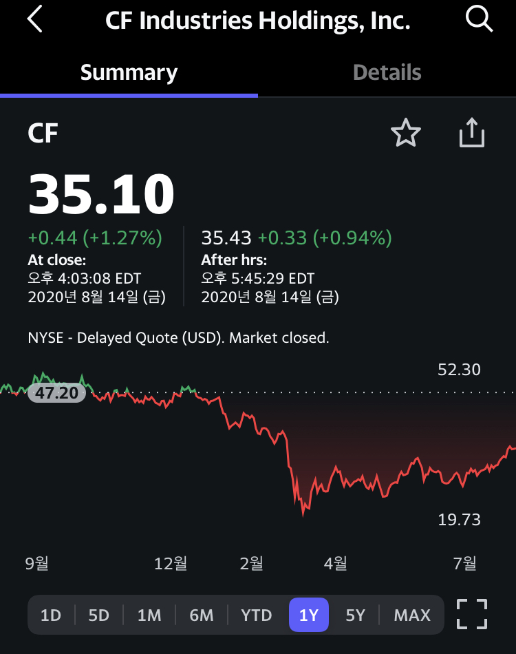 CF 인더스트리는 저평가주 중 하나다. 세계적인 비료 화학 기업으로 농작물에 필수적인 영양분을 공급하는 비료를 제조한다. CF 인터스트리는 꾸준히 사세를 세계로 확장해왔으며, 안정적인 탄소 배출 수준을 유지하고 있다. 뱅크오브아메리카의 애널리스트는 이번 7월 중순에 CF 인더스트리의 주식의 추천 등급을 매수(buy)로 상향 조정하기도 했다.
